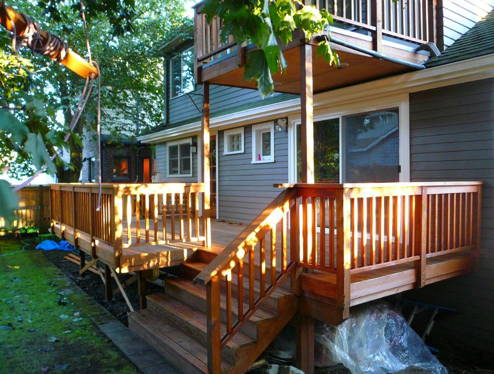 Oiled with clear "cedartone" oil, upper and lower deck